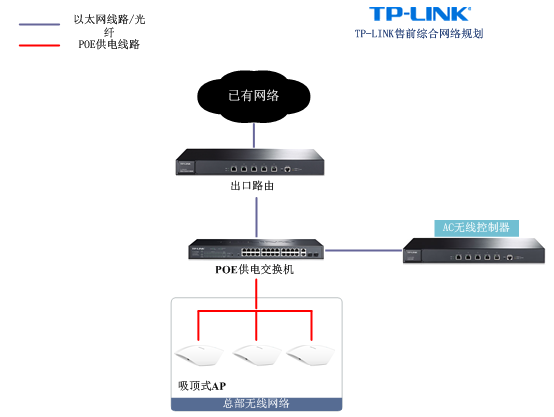 總部網(wǎng)絡(luò)拓如下,各零售店AP由總部AC統(tǒng)一管控: