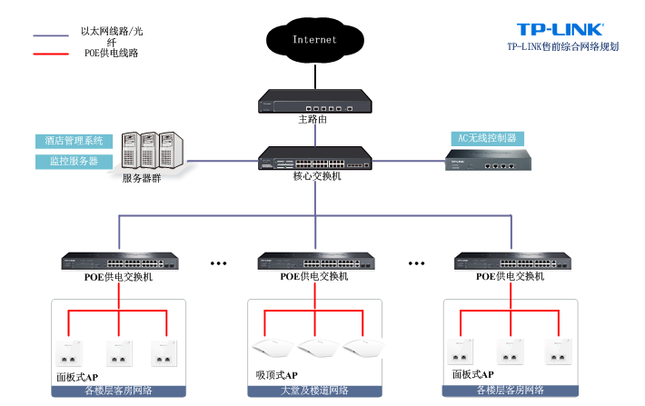 方案使用TP-LINK商用無線產(chǎn)品實(shí)現(xiàn)覆蓋,采用無線控制器AC和FIT AP的方式進(jìn)行部署。有如下特點(diǎn):