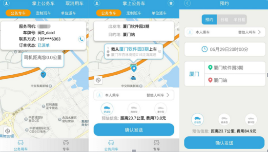 當公務(wù)人員需要外出時,在乘客端APP里輸入上車地點、目的地和用車事由并提交用車申請,待審批通過后調(diào)度中心會以就近原則進行派車。系統(tǒng)會將用車信息發(fā)送給司機,司機按照指定時間、地點等候用車人。什么時間申請的車,車輛行駛在哪里,一目了然。