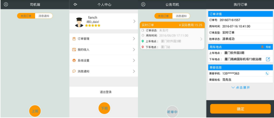 司機端APP為公眾的公務(wù)用車服務(wù)提供用車承接服務(wù),包括接單、訂單管理、行程服務(wù)、行程計費等,并為司機的上下班、個人信息和收入情況提供信息窗口。