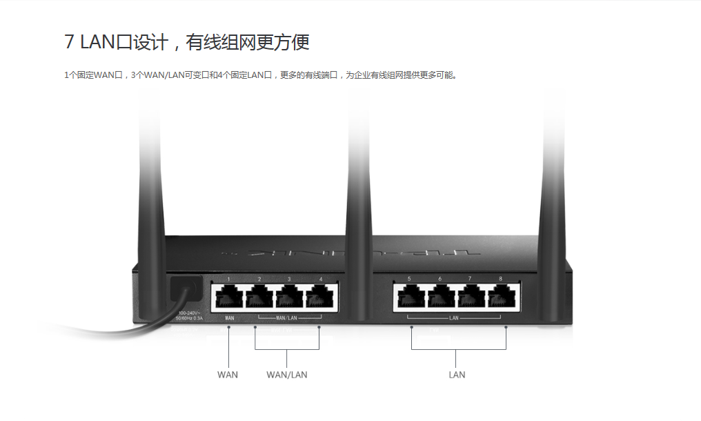 · 1個10/100M 固定WAN口,3個10/100M WAN/LAN可變接口,4個10/100M 固定LAN口