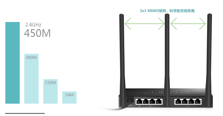 · 3x3 MIMO架構,無線傳輸速率高達450Mbps